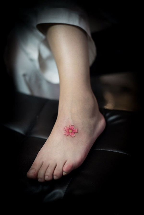 清新小桃花脚踝纹身_脚部纹身图案大全_纹身图吧