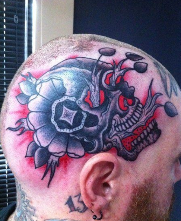 头部潮流很酷的一幅骷髅纹身图案