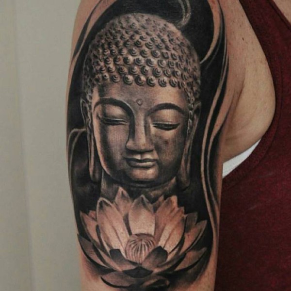 大臂莲花盛开佛祖纹身图案