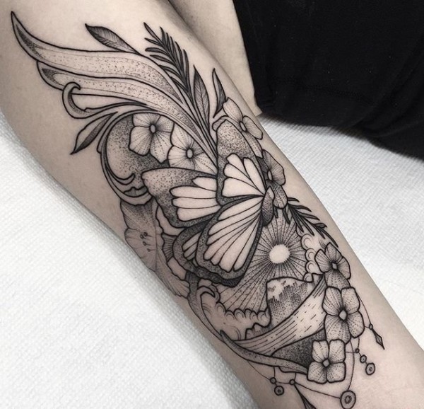 极简线条纹身 多款极简线条纹身素描欧美抽象纹身图片