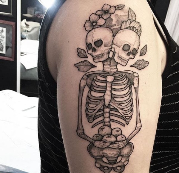 男人大臂黑白彼岸花骷髅_黑白纹身图案大全_纹身图吧