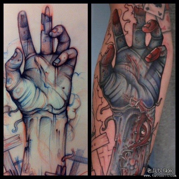 欧美小臂手纹身图案手稿