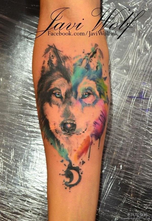 小臂水彩狼头纹身图案