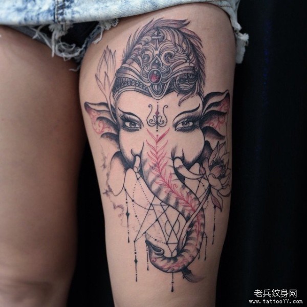 大腿传统象神几何纹身图案