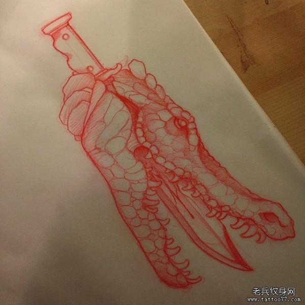 欧美鳄鱼匕首纹身图案手稿