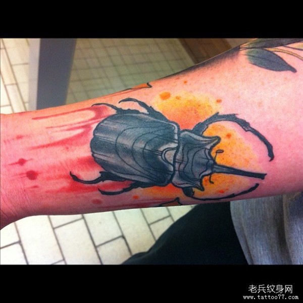 小臂甲虫欧美泼墨纹身图案
