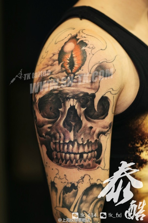 个性手臂悲伤的骷髅纹身图案图案图片_骷髅纹身图案大全_纹身图吧