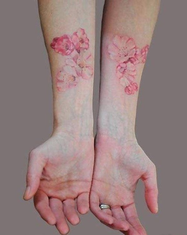 女生手臂上彩色渐变纹身小清新植物纹身图片