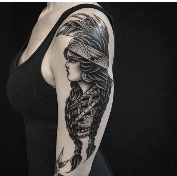 手臂上黑白点刺纹身人物肖像纹身图片