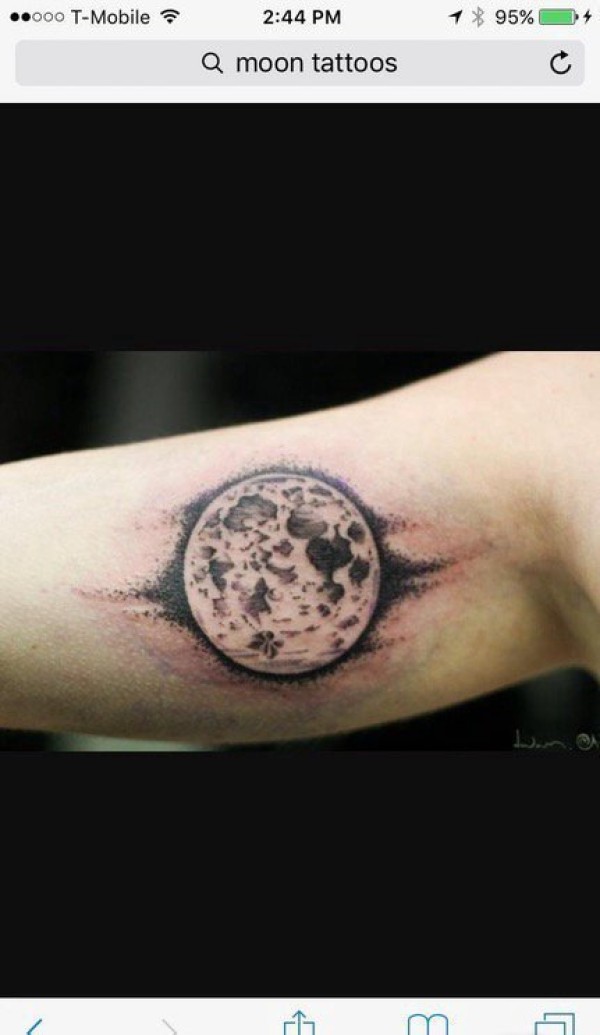 手臂上黑白纹身点刺技巧纹身月亮图片