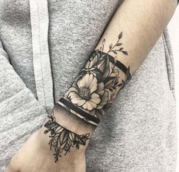 和实物非常相似的手臂花朵纹身图案