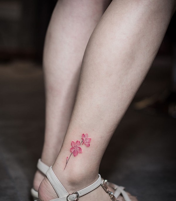 清新小桃花脚踝纹身_脚部纹身图案大全_纹身图吧