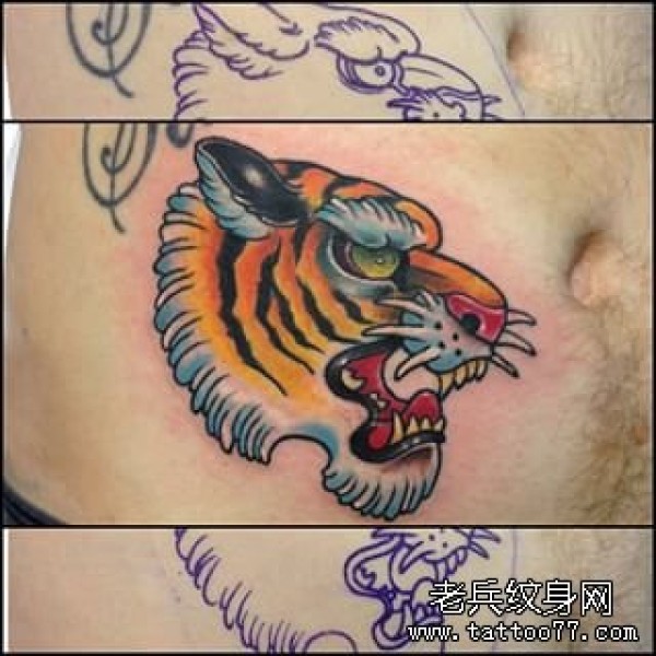 腹部school老虎头像纹身图案