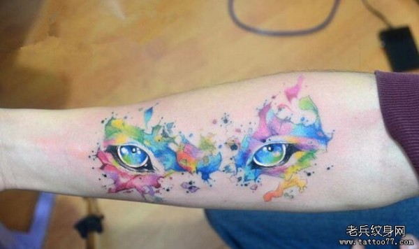 小臂动物眼睛泼墨彩色纹身图案