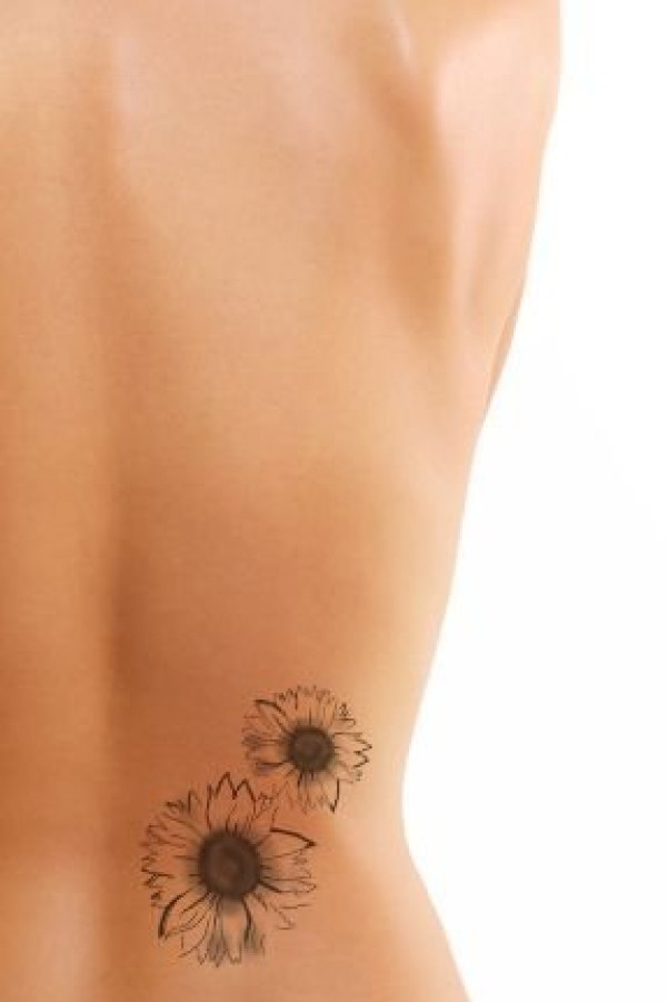 女生后腰纹身黑白灰风格抽象线条纹身图案