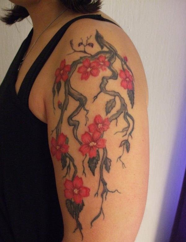 后肩唯美花藤英文图案图片_植物纹身图案大全_纹身图吧