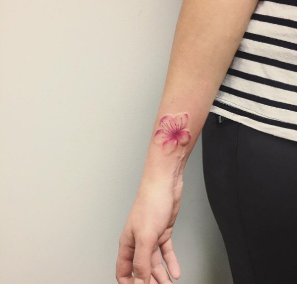 女性的彩色植物颜料纹身水彩花朵纹身清新小图案