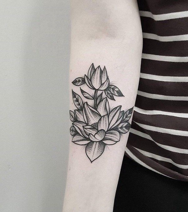 手臂上纹身黑白灰风格点刺纹身文艺花朵纹身图片