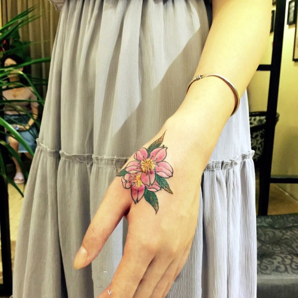 女生手背美丽优雅的花朵纹身图案
