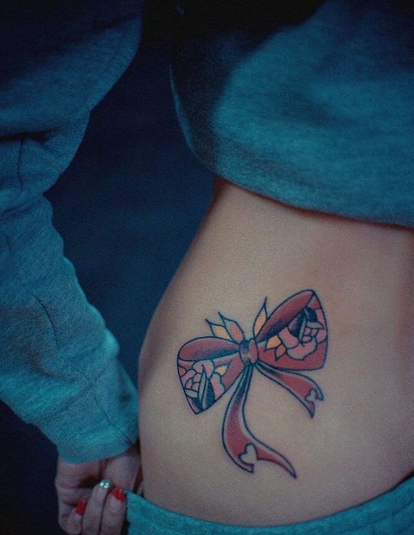 分享一款腰部时尚性感的蝶恋花纹身图案_腰部纹身图案大全_纹身图吧