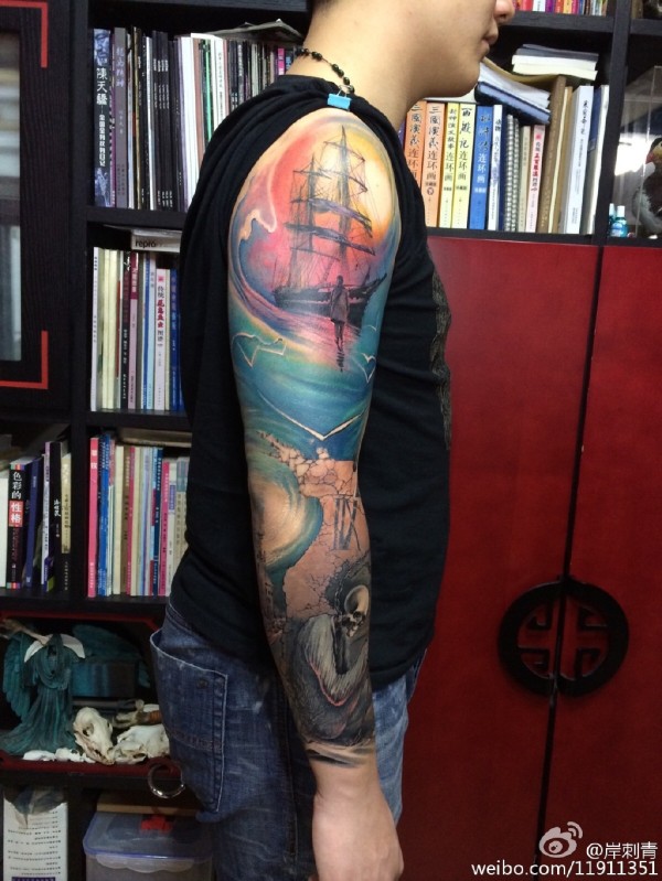 (破碎的梦)彩色花臂,小臂部分为现实世界的自己