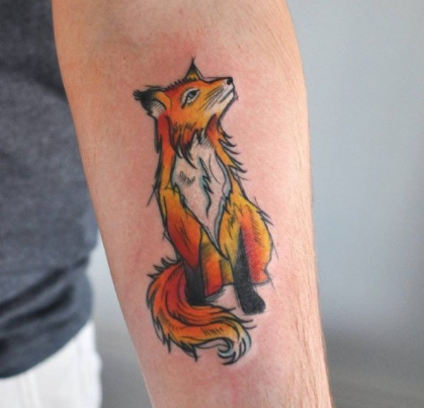 26款彩色狐狸纹身简单线条纹身水彩小动物纹身图案