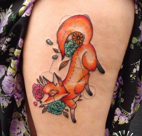 26款彩色狐狸纹身简单线条纹身水彩小动物纹身图案