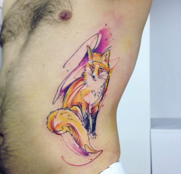 26款彩色狐狸纹身简单线条纹身水彩小动物纹身图案