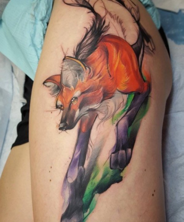 26款彩色狐狸纹身简单线条纹身水彩小动物纹身图案