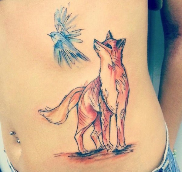 26款彩色狐狸纹身简单线条纹身水彩小动物纹身图案