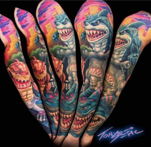 彩色的搞笑卡通纹身鲨鱼纹身小动物纹身图案
