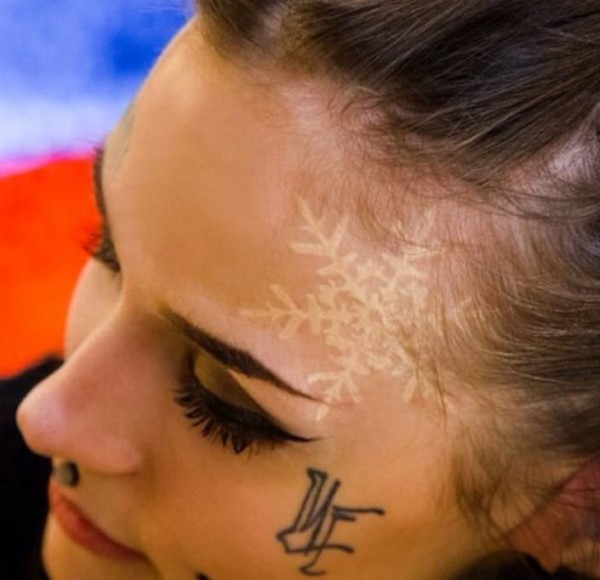个性的白墨水纹身玫瑰花和小雪花纹身几何花纹身图案