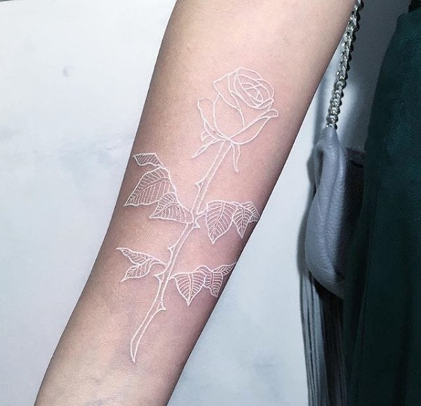个性的白墨水纹身玫瑰花和小雪花纹身几何花纹身图案