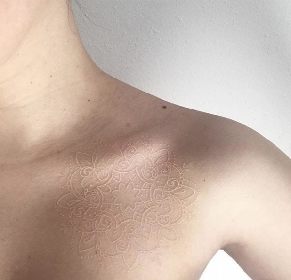 个性的白墨水纹身玫瑰花和小雪花纹身几何花纹身图案