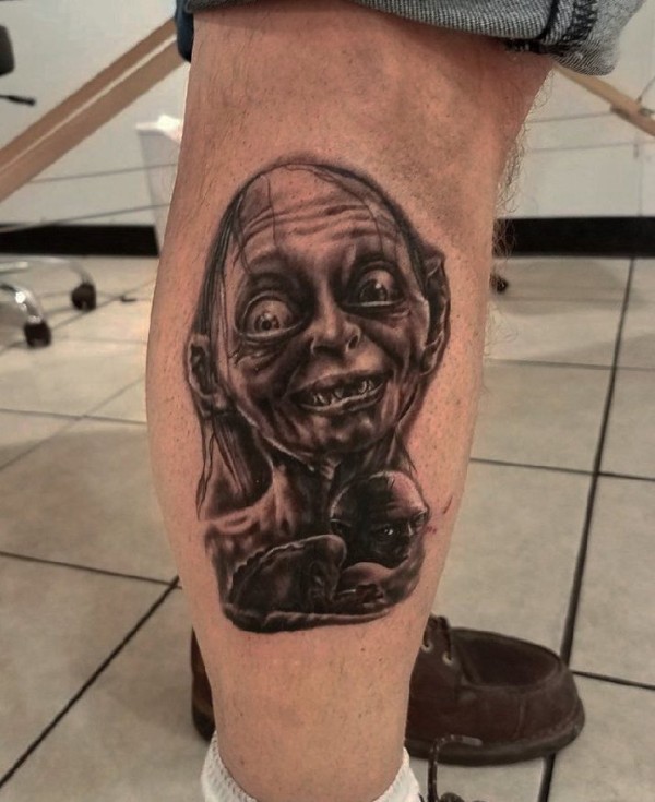 黑灰色恐怖纹身电影人物肖像纹身素描技巧咕噜纹身图片