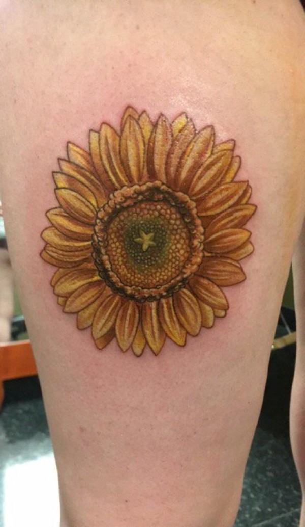 草图感向日葵纹身图案_植物纹身图案大全_纹身图吧
