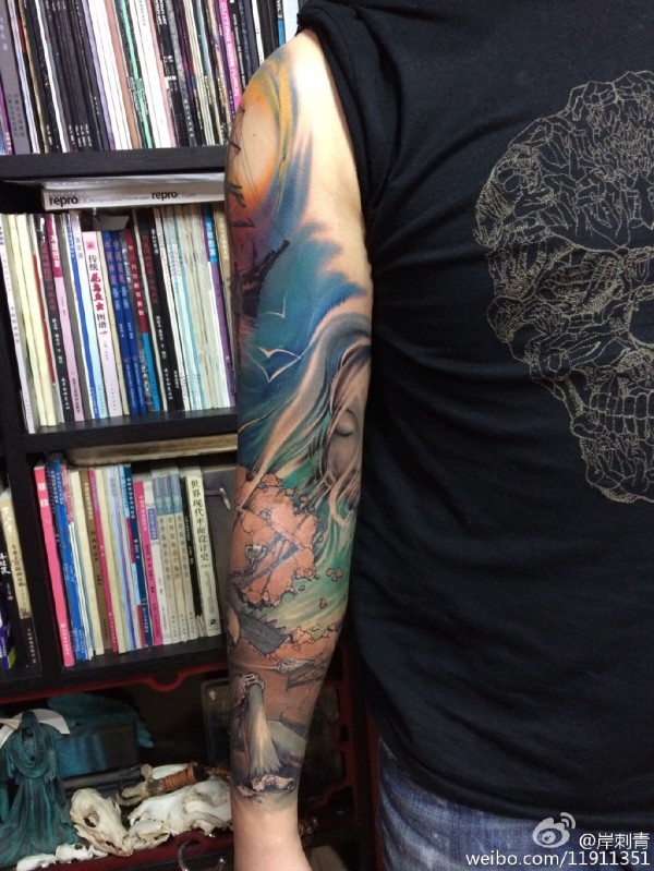(破碎的梦)彩色花臂,小臂部分为现实世界的自己