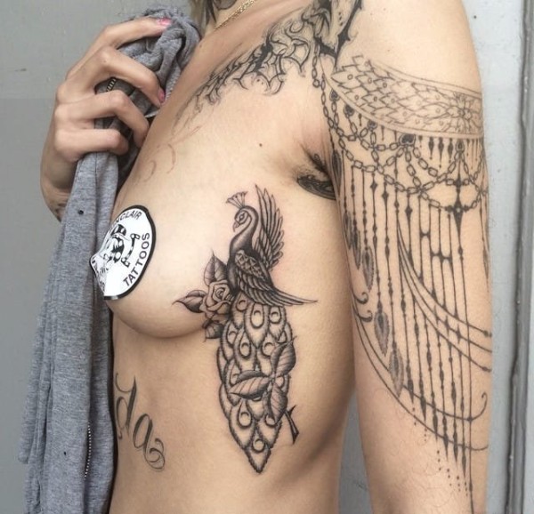 分享一款腰部时尚性感的蝶恋花纹身图案_腰部纹身图案大全_纹身图吧