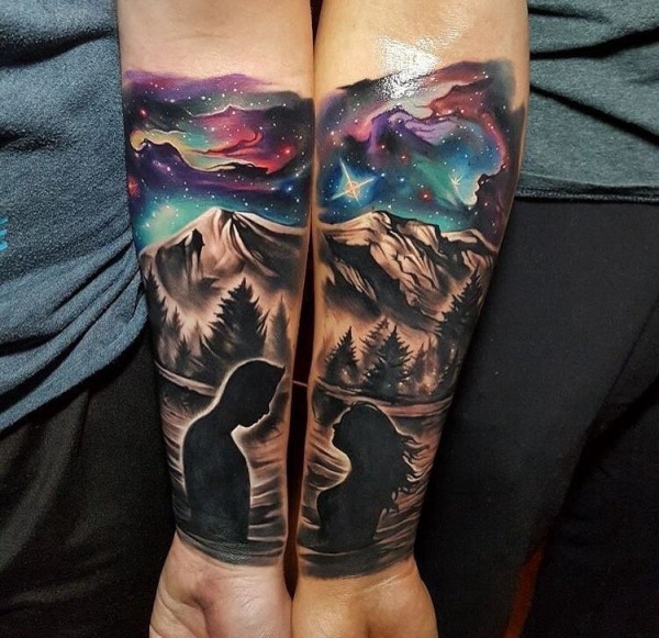 手臂上创意情侣纹身风景原宿星空纹身图片