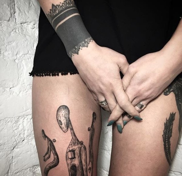 极简线条纹身 多款极简线条纹身素描欧美抽象纹身图片