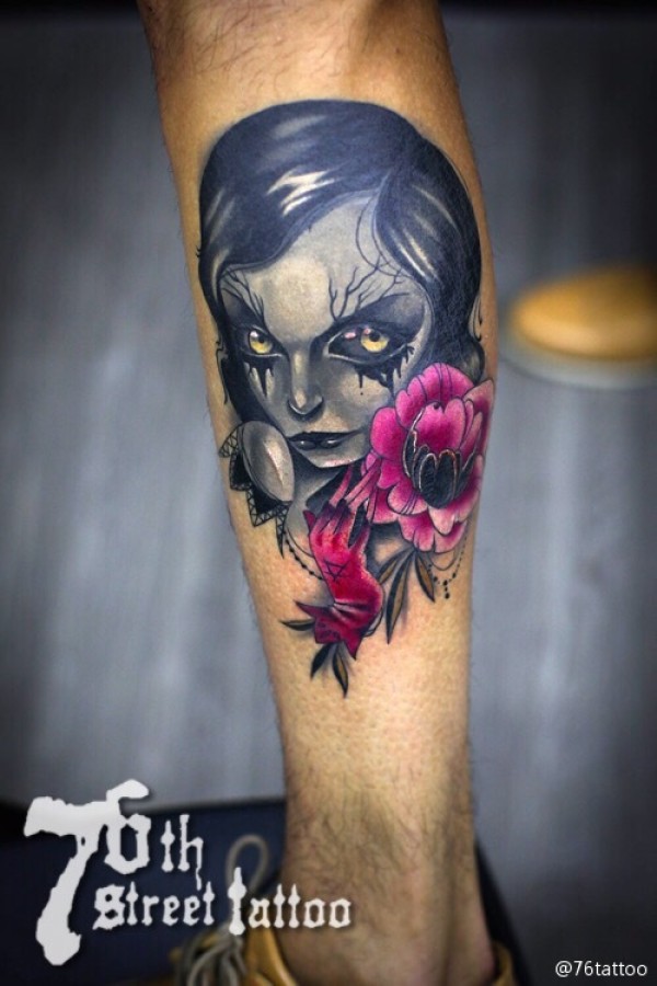 花腿纹身--一组大黑腿纹身图案作品欣赏