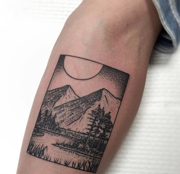 一组装在盒子里的几何元素纹身黑白点刺纹身图片