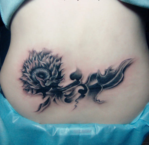 草图感向日葵纹身图案_植物纹身图案大全_纹身图吧