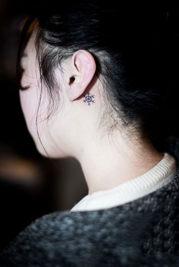 耳后简约小雪花纹身图案
