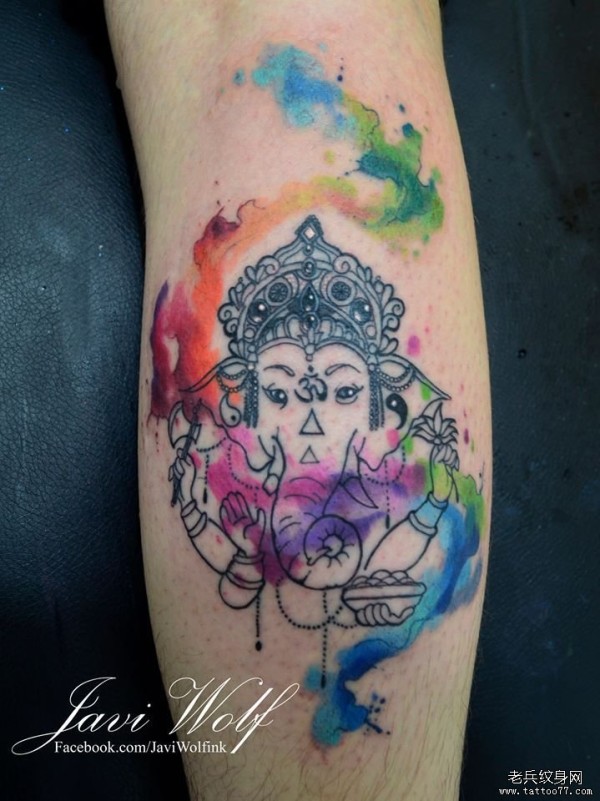 小腿上一款大象纹身图案_腿部纹身图案大全_纹身图吧