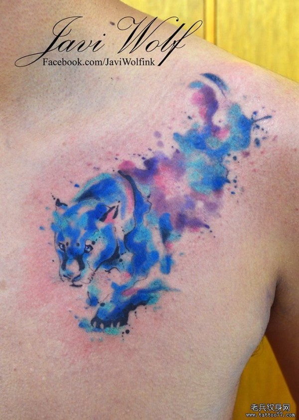 肩部泼墨豹子纹身图案
