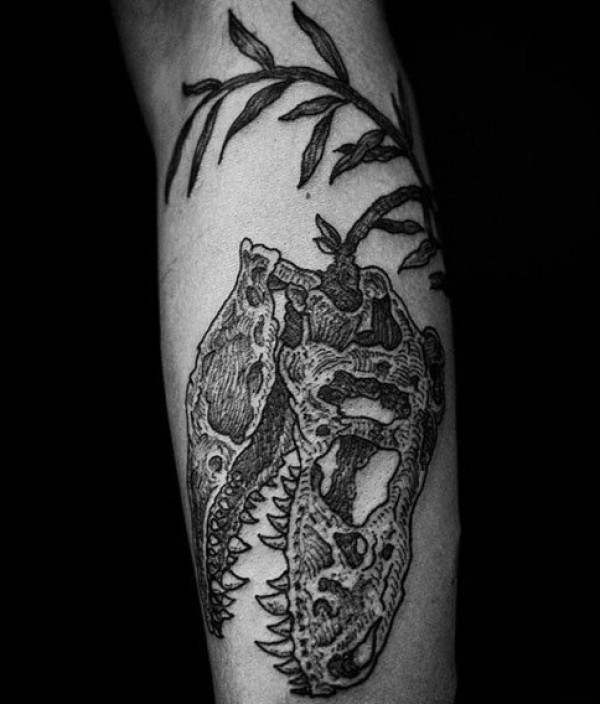 黑色的点刺纹身素描技巧骷髅头纹身动物恐龙纹身图案