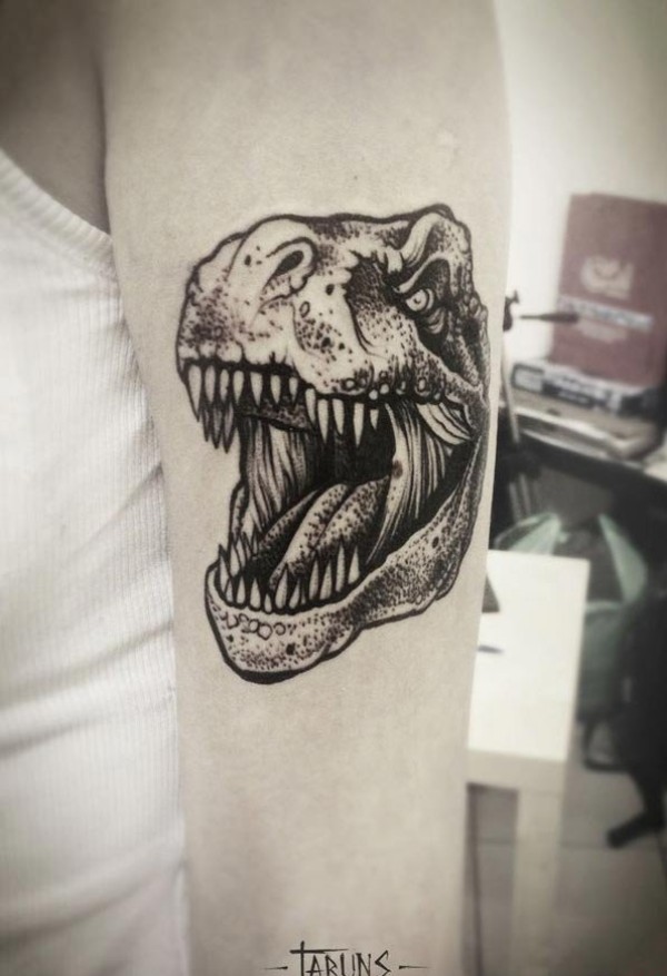 黑色的点刺纹身素描技巧骷髅头纹身动物恐龙纹身图案