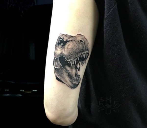 黑色的点刺纹身素描技巧骷髅头纹身动物恐龙纹身图案