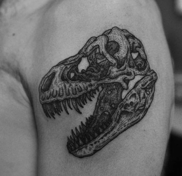 黑色的点刺纹身素描技巧骷髅头纹身动物恐龙纹身图案